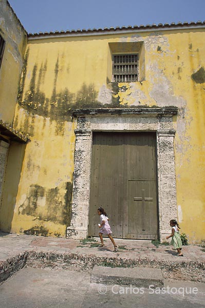 8 of 28 - Two girls run by a church at the traditional Getsemani neighborhood