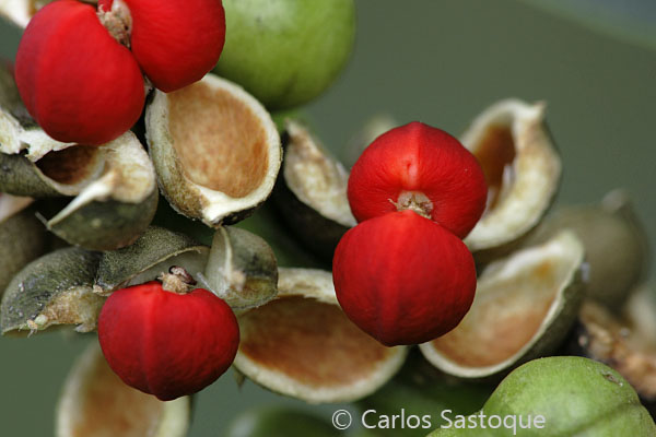 8 of 18 - Red fruit is revealed at the opening of a shell