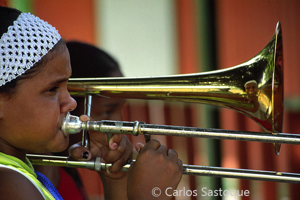 2 of 18 - The local youth band practices in front of colorful wooden houses